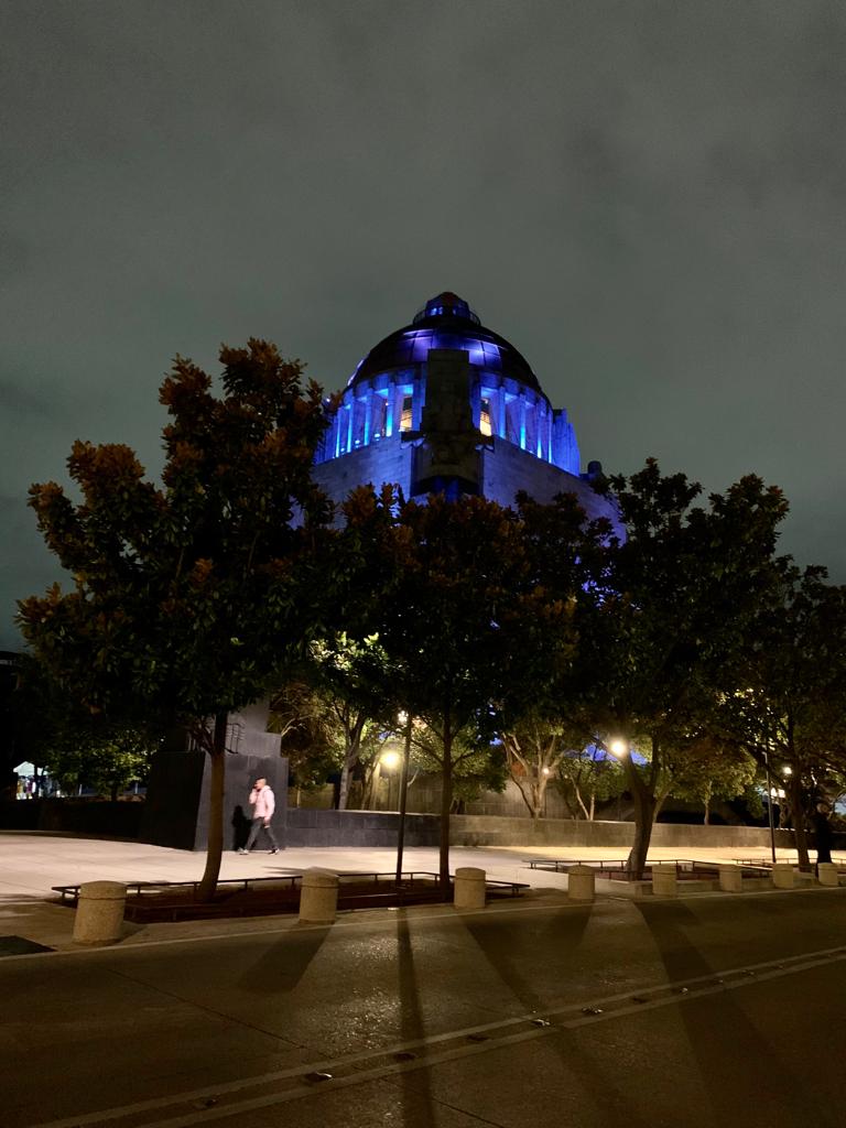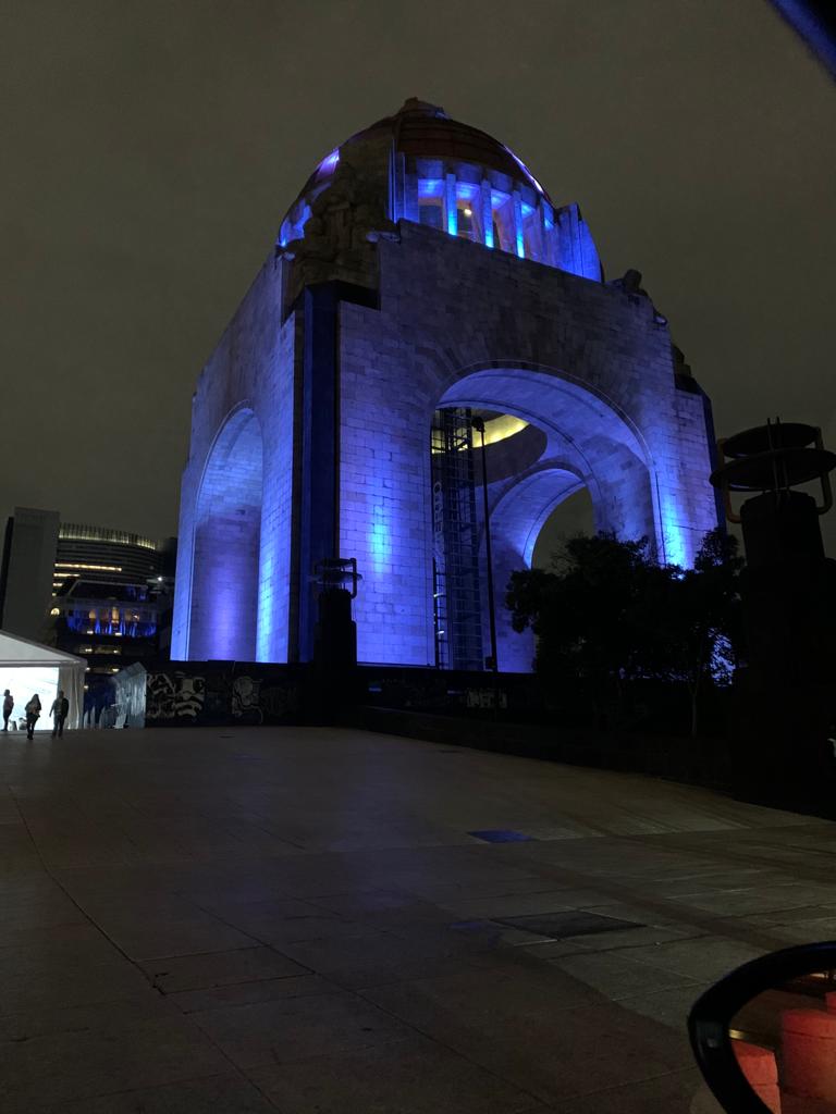 La torre DKV de Zaragoza se ilumina de color azul en honor a los pacientes con tumores cerebrales